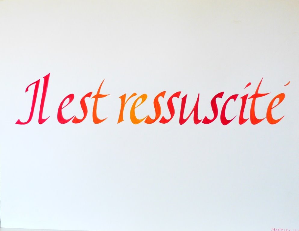 Antoine, merci encore à toi et à toute la communauté de Notre-Dame placée sous le beau vocable de l’Espérance. Si vous le voulez bien, le panneau du lutrin calligraphié par Mireille « Il est ressuscité ! » restera pour vous après notre passage comme un signe de ce que nous recevons de vous.