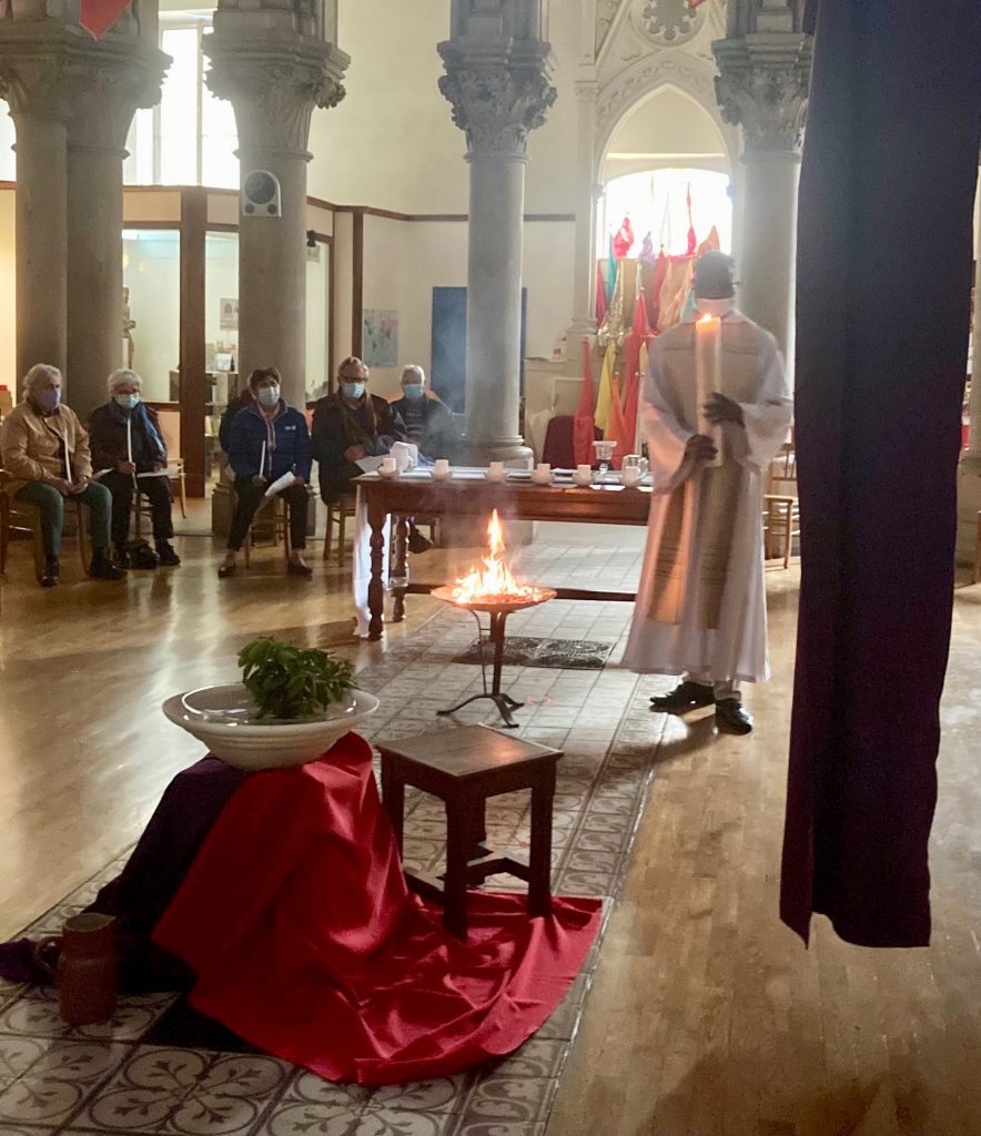 Bonjour à toutes et à tous. Nous sommes heureux de nous retrouver ici pour célébrer le Résurrection, dans ce lieu habité par les Assomptionnistes, lieu qui nous a offert l’hospitalité pendant ces trois jours. Horaire, distance, confinement font que nous ne sommes pas aussi nombreux que nous le souhaiterions. Nous prierons avec ceux qui n’ont pas pu se joindre à nous. Nous rejoignons aussi par la pensée, par les textes, nos frères juifs qui fêtent Pessah ces jours-ci, c’est-à-dire la commémoration de la sortie d’Egypte : en effet, nous lirons aussi, parmi les textes de l’Ancien Testament, celui de l’Exode. Enfin, je souhaite que ce temps où nous sommes rassemblés nous nourrisse et fasse germer en nous les semences de résurrection, pour que nous puissions continuer à faire vivre notre communauté, autrement.